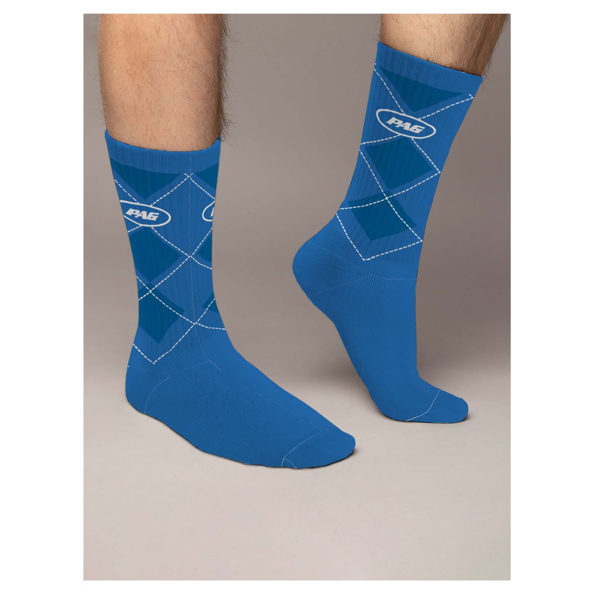 Indulge in comfort and durability with our heavyweight athletic socks, crafted from a blend of cotton, nylon, and spandex. Whether you're hitting the field or lounging off-duty, these socks provide the perfect balance of support and softness. Adorned with a woven jacquard PAG design, they seamlessly blend style with functionality, ensuring you look and feel your best during any activity. Treat your feet to the ultimate combination of performance and style with our premium athletic socks. One size fits most.