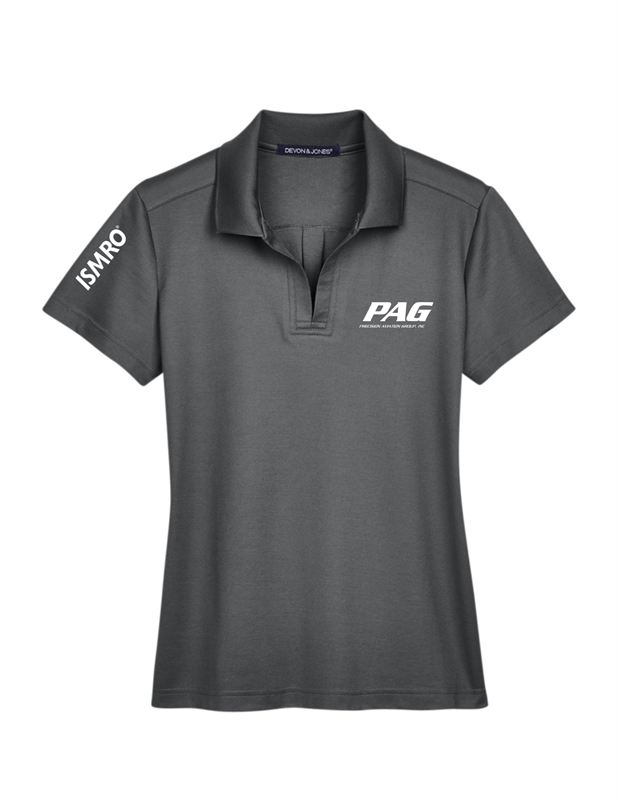 Discover the pinnacle of style and performance with the Devon & Jones performance plaited polo. This polo is a blend of luxury, comfort, and functionality, featuring a unique construction of 5 oz., 100% polyester face plaited to 60% polyester and 40% cotton back, resulting in an overall garment composition of 61% polyester and 39% cotton. The proprietary dual-sided mesh pique knit offers a fine denier wicking polyester exterior and a soft-as-cotton wicking blend interior, delivering optimal moisture-wicking performance with UV protection ranging from 15-39. The polo also boasts a matching flat-knit collar, a three-button placket, and dyed-to-match buttons, ensuring a polished look for any occasion. PAG logo heat sealed on the left chest and the ISMRO logo heat sealed on the right sleeve.