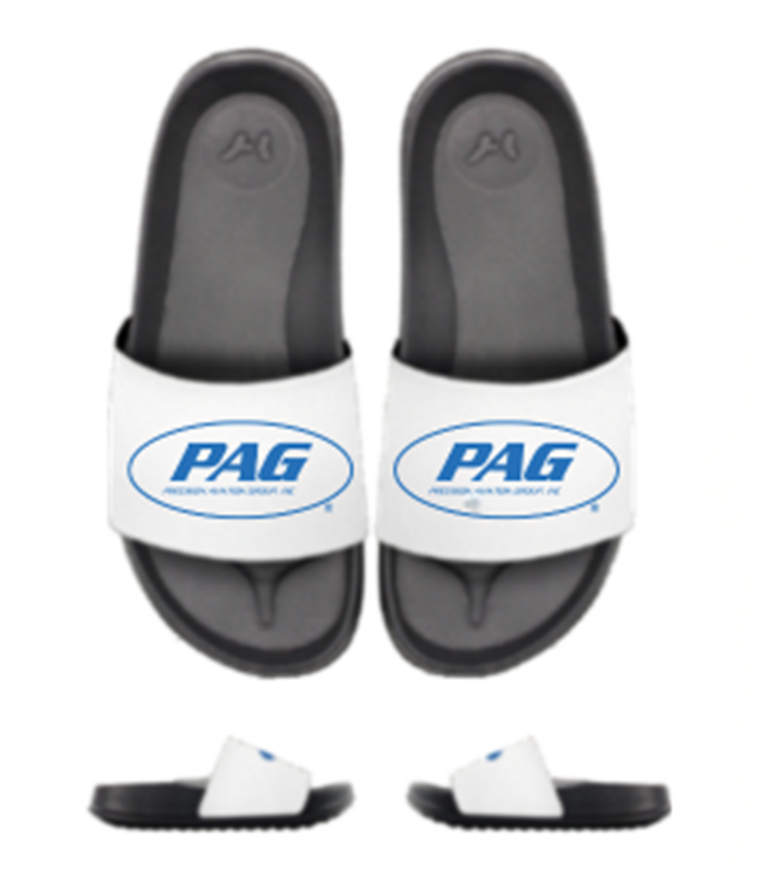 Step into all-day comfort and modern style with these PAG Slides. Designed for versatility and ease, these slides feature ultra-cushioned insoles that provide a soft, supportive feel with every step, making them ideal for travel, casual wear, or relaxing between long workdays. The adjustable strap offers a secure fit and showcases a full-color logo for a bold, professional look. Finished with durable rubber outsoles for long-lasting performance, these slides deliver both comfort and confidence wherever the day takes you.