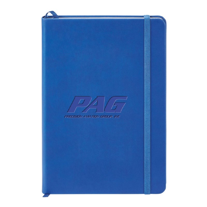 This perfect-bound journal boasts 192 perforated ivory lined pages, offering an ideal canvas for capturing your next big idea, be it in meetings or daily journaling sessions. The journal includes a matching color ribbon bookmark to effortlessly mark your current page and maintain continuity in your thoughts. With a gusseted pocket, securely gather and organize receipts within its pages. The matching color elastic closure adds a touch of style while keeping the pages neatly intact. Elevate your note-taking experience with this journal - a versatile companion that seamlessly combines style and functionality to complement your creative and organizational endeavors. Debossed with the PAG logo on the cover.