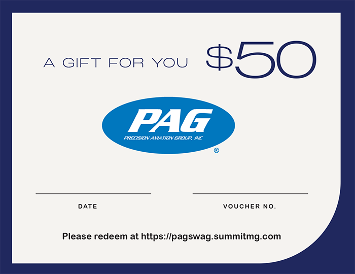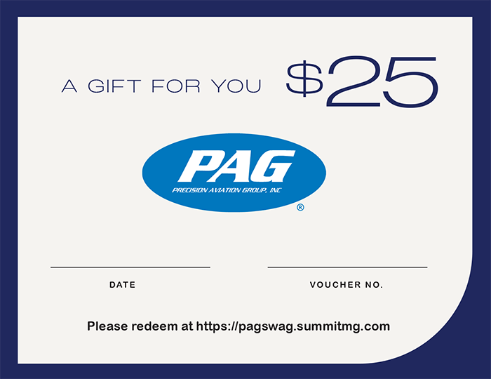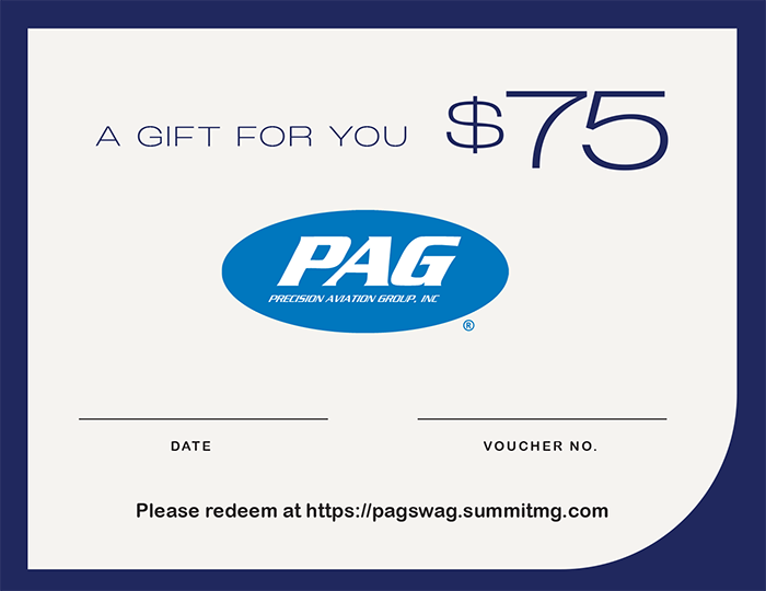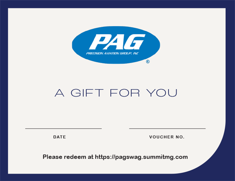 Precision Aviation Group Store gift certificates are the perfect way to show your appreciation for your colleagues! Once you place your order, you will receive an email with a redemption code, which can be shared with a colleague and entered in the Voucher Number field at checkout for any Precision Aviation Group merchandise purchased on this website.